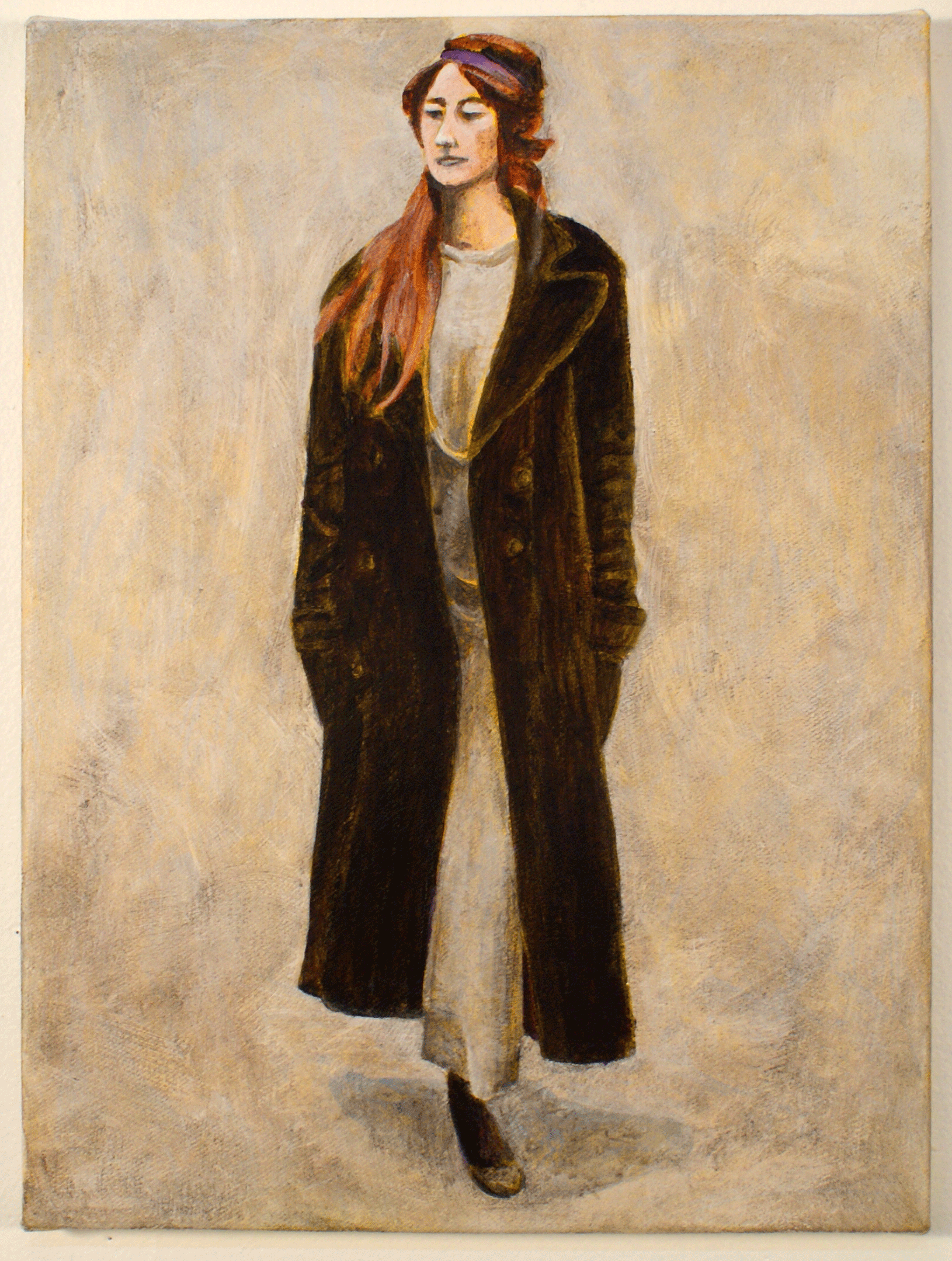 Suffragette Detained, Holloway Goal, London, l912. acrylic on canvas, 12″ x 16″, 2013.