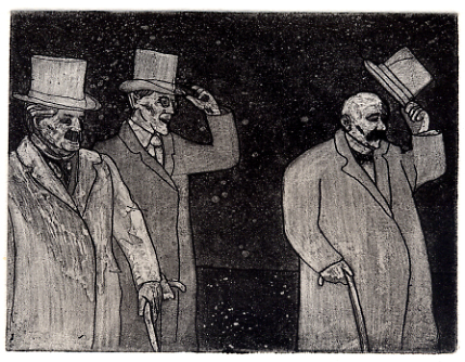 Leaders U.S., France and U.K., etching, 2009, 11 x 15 cm