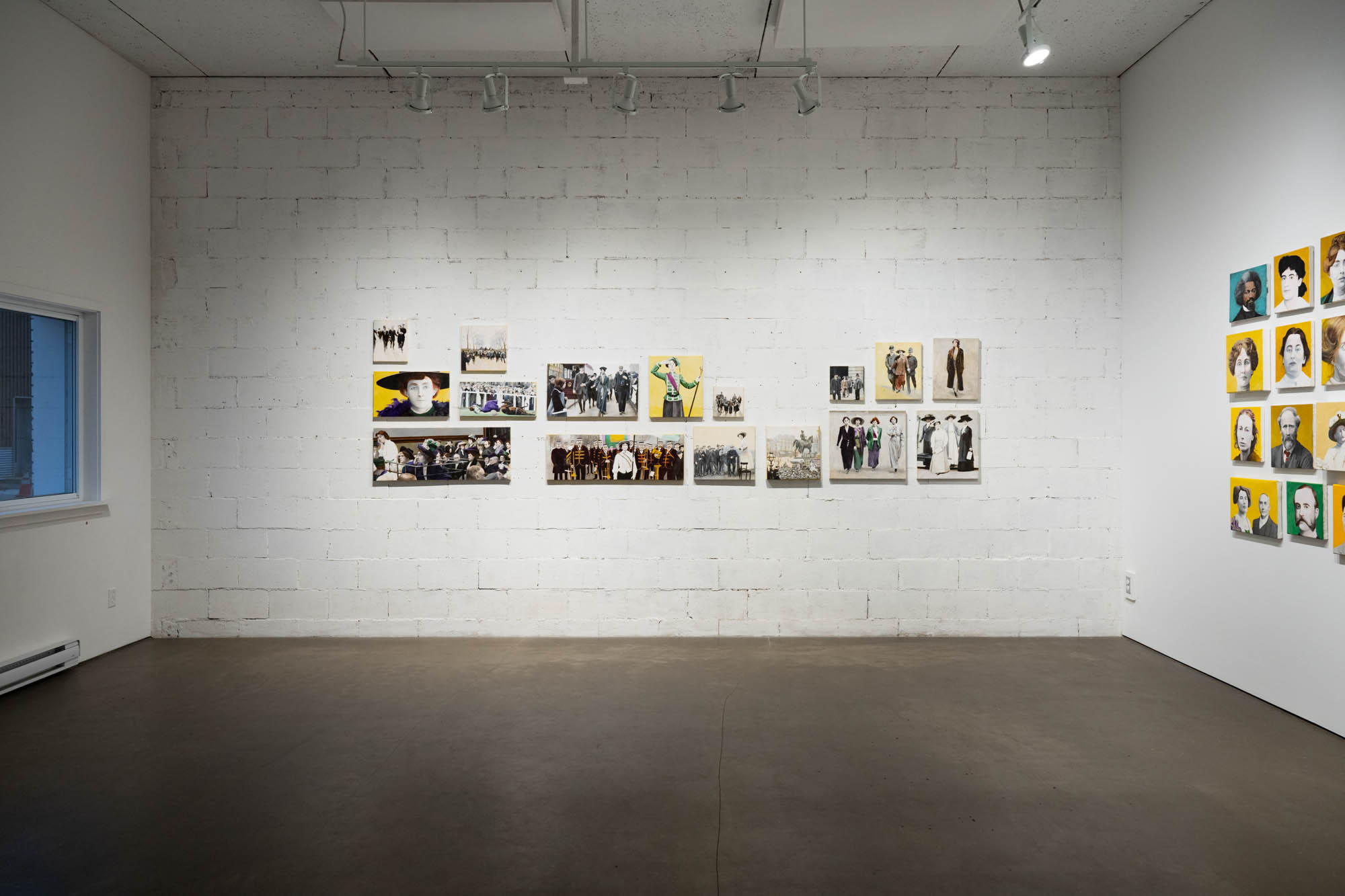 Suffragette – Installation View at Produit Rien: (left to right) Actions + Events; Suffragettes, Influencers and Supporters